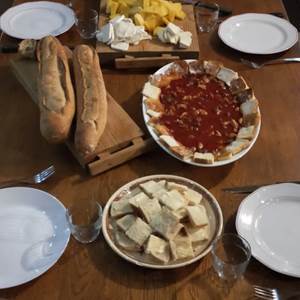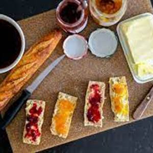 Es besteht aus: Brot vom Dorfbäcker, Butter, Marmelade, Milch, Kaffee, Tee, Schokolade.